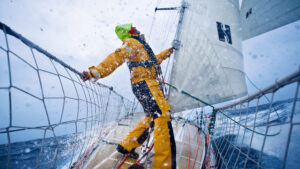 Modern technical clothing is very good but if you’re going to expose yourself to the foredeck and you’re doing big sail changes in heinous conditions with white water charging down the deck at 20 knots or so, you’ve got to accept that you’re going to get wet – no matter how good the gear you’re wearing.