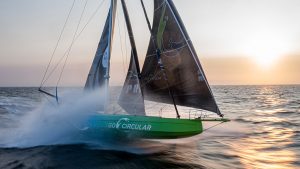Their consistent high speeds and control are all the more impressive given the team had only restepped the mast shortly before the Leg 5 start, and had been having issues with their masthead instruments. A replacement system was first installed at the back of the IMOCA before Sam Goodchild on Wednesday climbed the mast yesterday to fix a replacement it.
